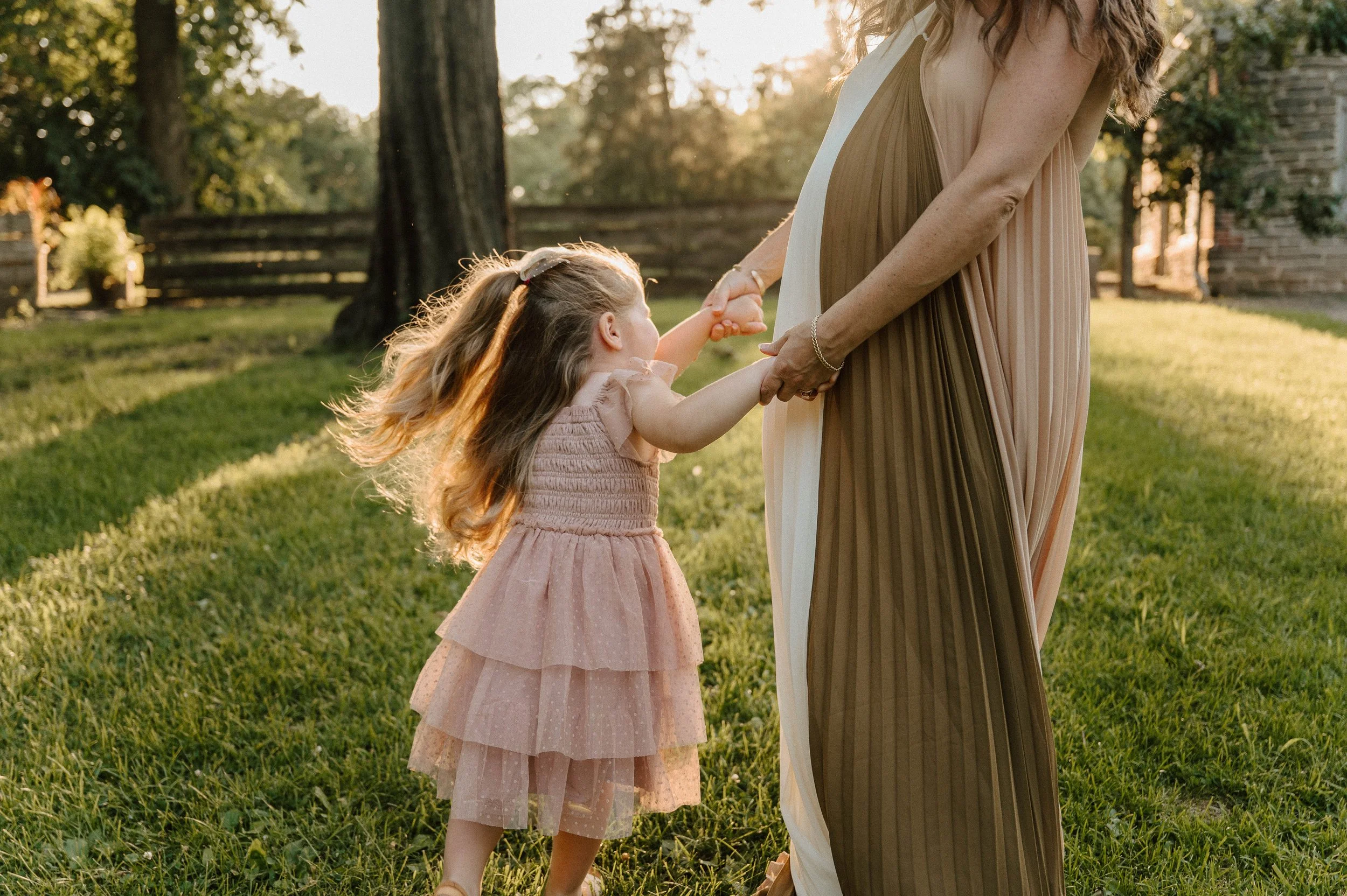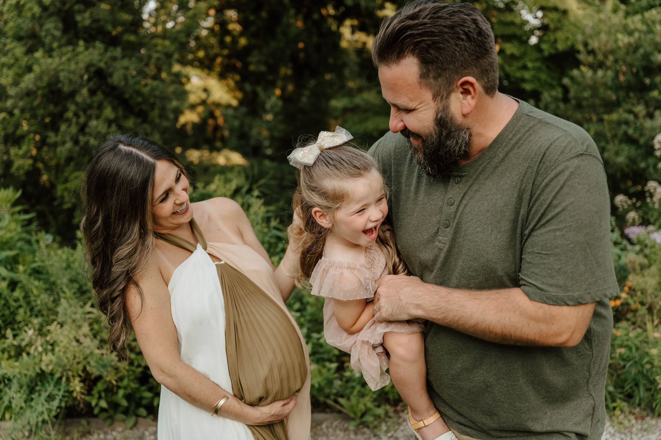 Mallory and Bradley met back in 2014 in Florida, and since then, they’ve built a life full of love, travel, and now— parenthood. Their daughter Piper, the sweetest and sassiest 3-year-old, stole the show during this maternity session. She twirled in her pink dress, laughed with her parents, and explored the beautiful grounds around the garden.